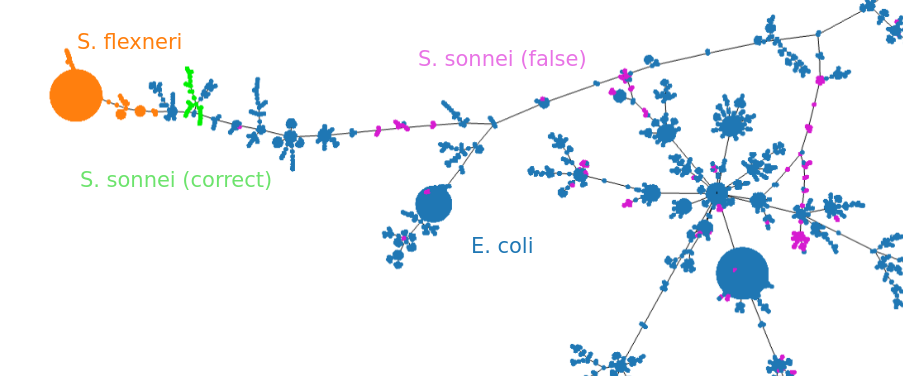 The previously unrepresented species of S. flexneri now had 9,435 genomes available in the public dataset. These can be searched using the E. coli cgMLST scheme clusters.